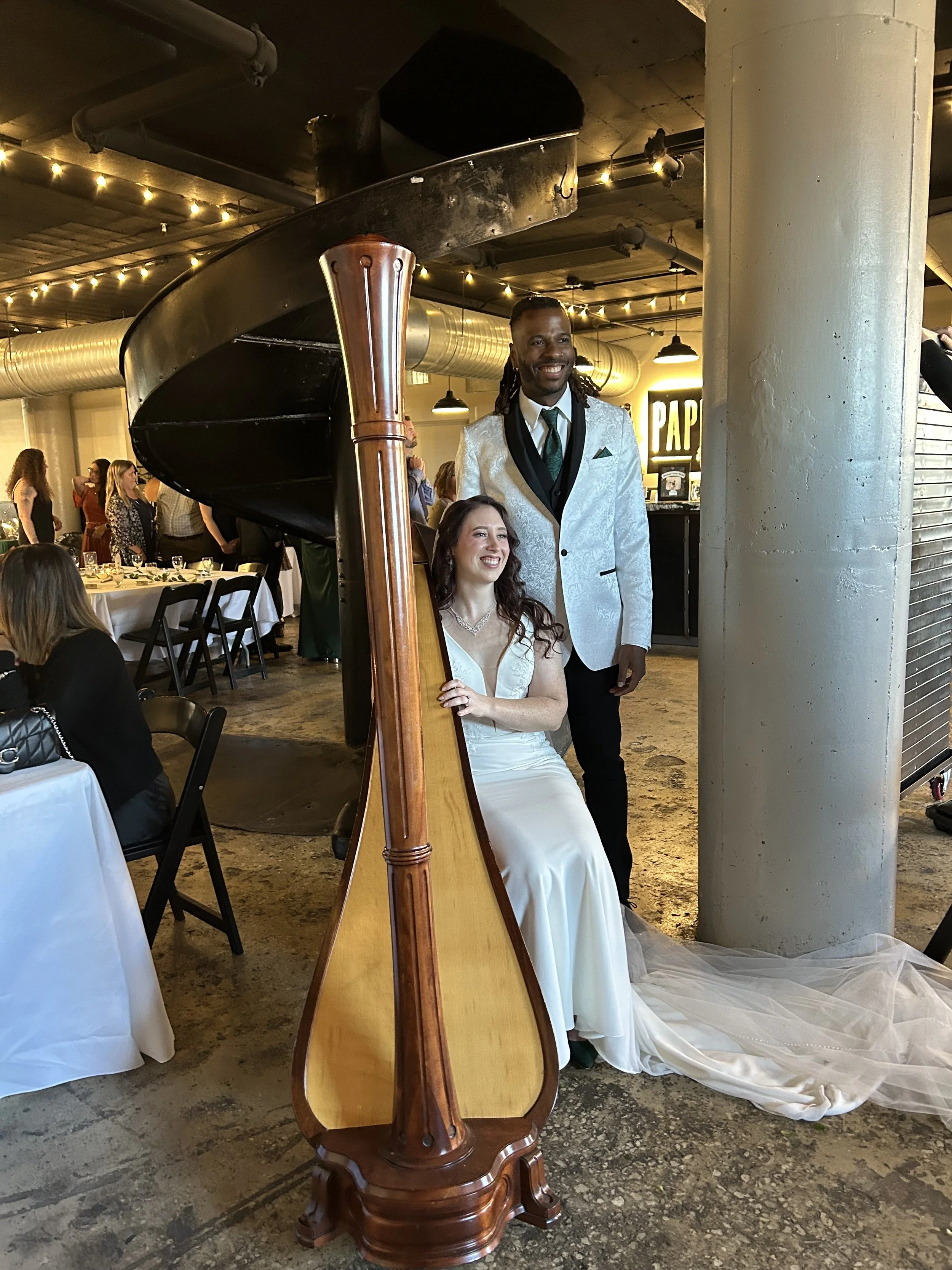 “Maia was one of the most beautiful aspects of our wedding day! One of the challenges of having an at-home wedding was finding the perfect music source & we firmly believe there was no better fit for us than a harpist. Maia was great to communicate with and did not disappoint. I would recommend her to anyone wanting to take their wedding to the next level.”